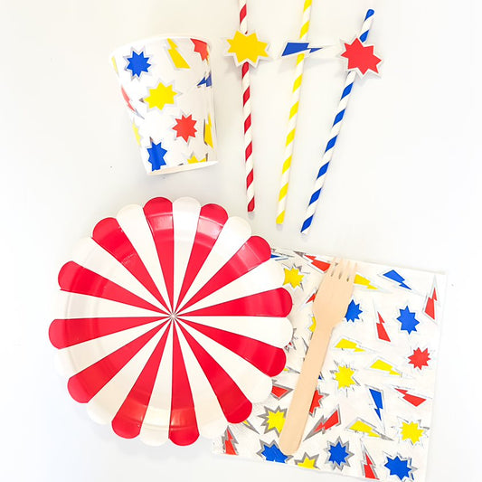 Canudos papel listras rosa claro e rosa pink (20 Un.)