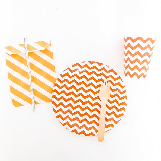 EsgotadoPratos papel zig zag laranja (8 Un.)