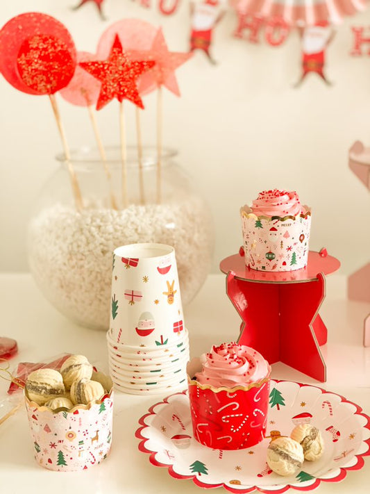 EsgotadoPratos papel xadrez vermelho (8 Un.)