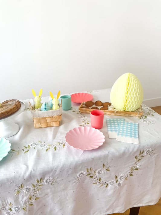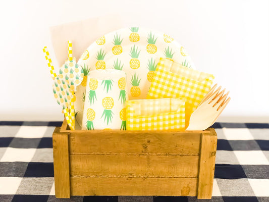 Pratos de papel xadrez amarelo claro Tam. G (5 Un.)