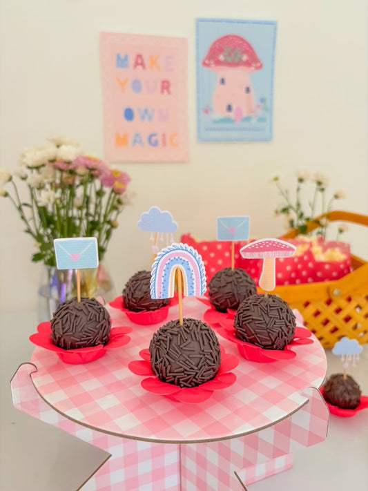 Suporte para bolo e doces xadrez Rosa