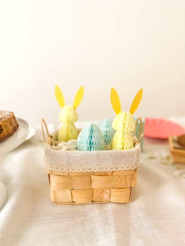 Cestinha em vime e tecido bege