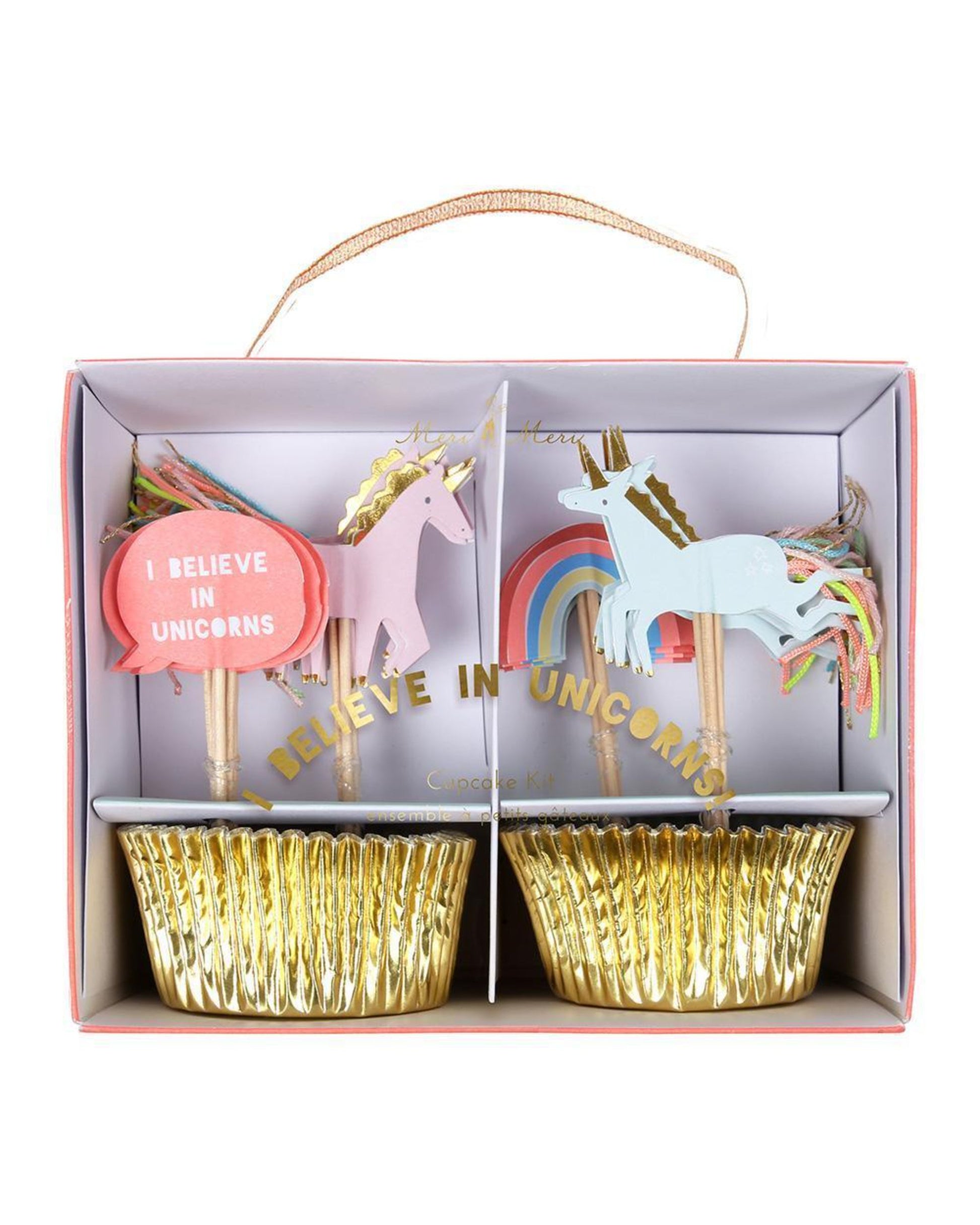 Contém 24 forminhas de cupcake e 24 topos de doces em 4 modelos diferentes
