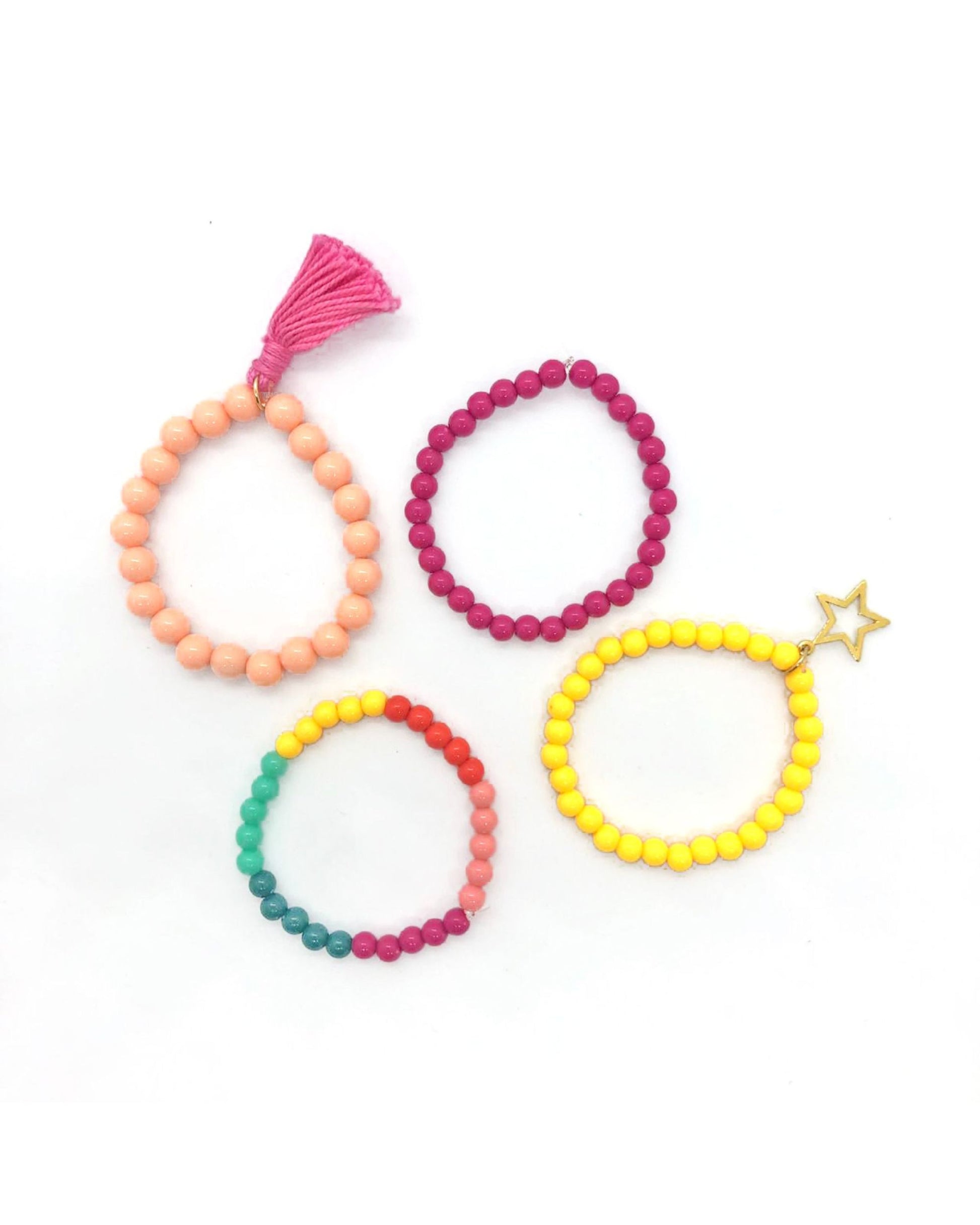 Kit com 4 pulseiras de bolinhas de plástico