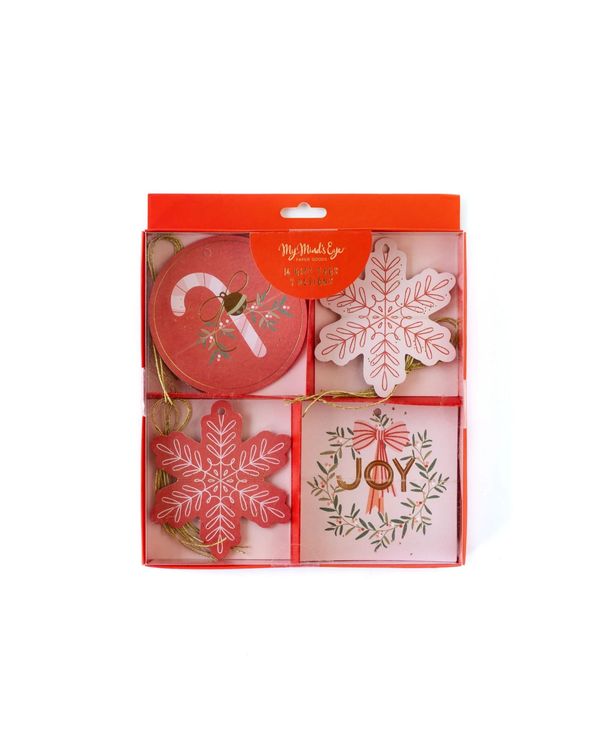 Contém 16 tags em 04 desenhos e formatos diferentes, todos com "From"e "To" ("De/Para") e alça em barbante dourado para prendê-los nos presentes