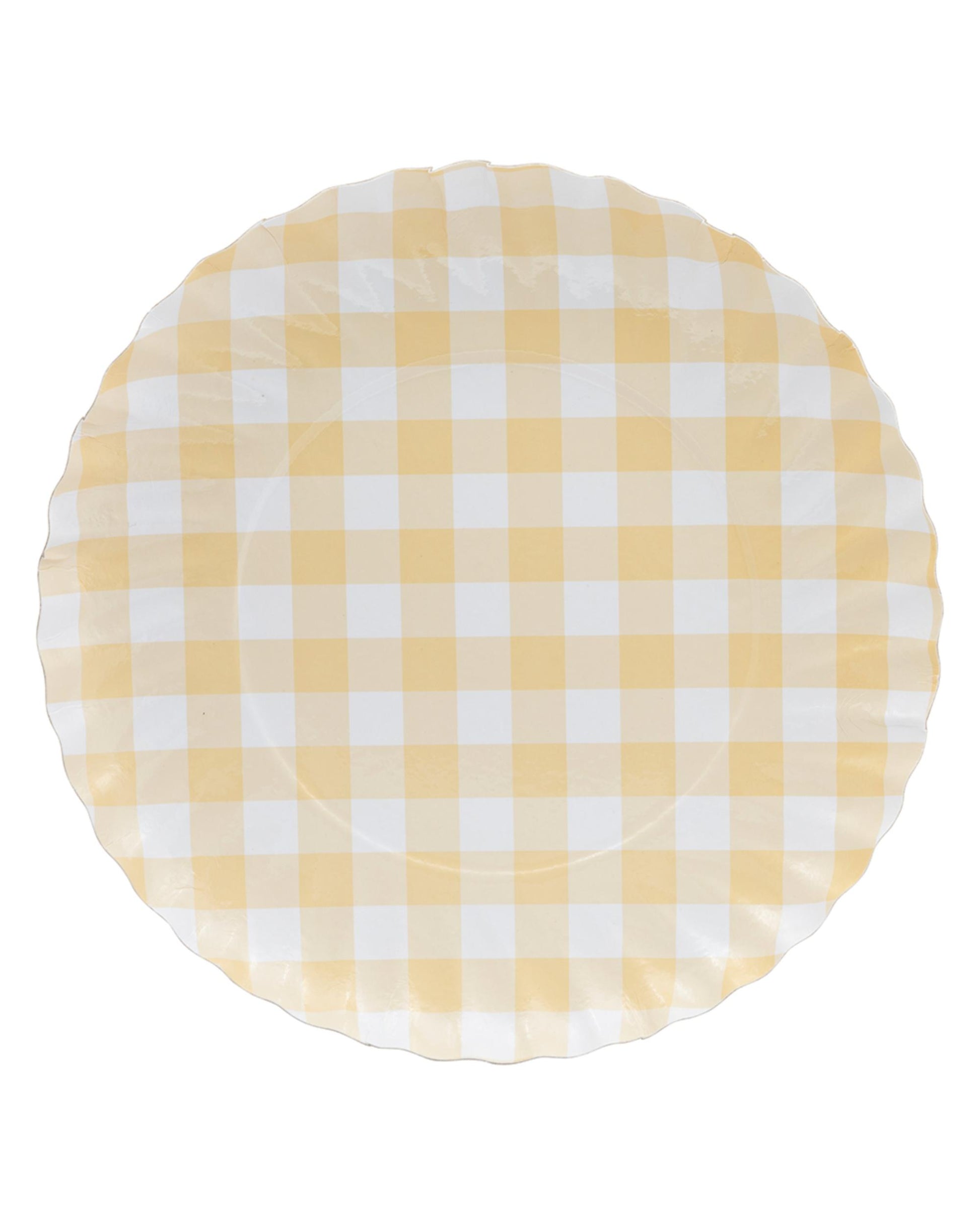 Pratos de papel xadrez amarelo claro Tam. G (5 Un.)