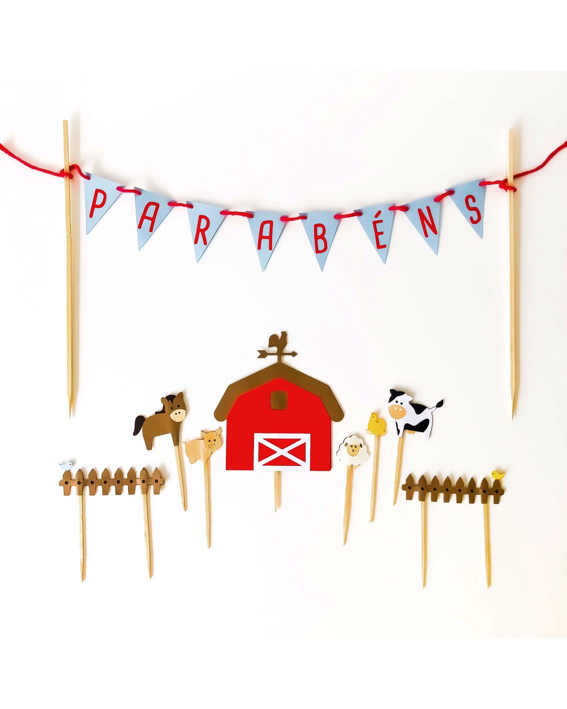 1 varal de bandeirinhas (parabéns ou personalizado) cada bandeirinha medindo 5,5cm A x 3,5cm L