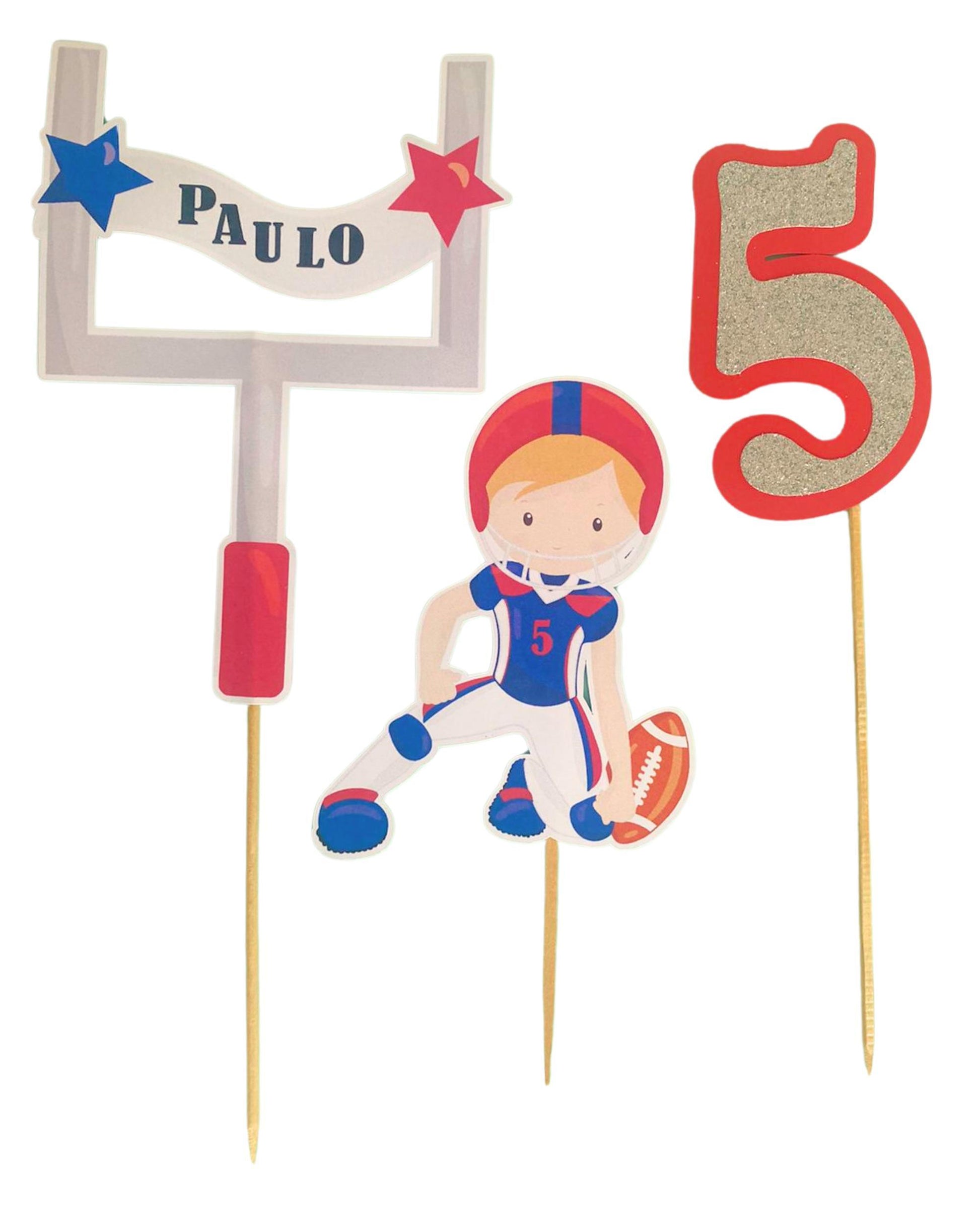Quantidade - 3 itens diferentes sendo, 1 gol de campo (medindo 15 cm A x 10,7 L - sem considerar o palito) - 1 Boneco Jogador (medindo 8,6 cm A x 10,7 cm L - sem considerar o palito) - 1 Numero (medindo 8,9 cm A x 5,4 cm L - sem considerar o palito )