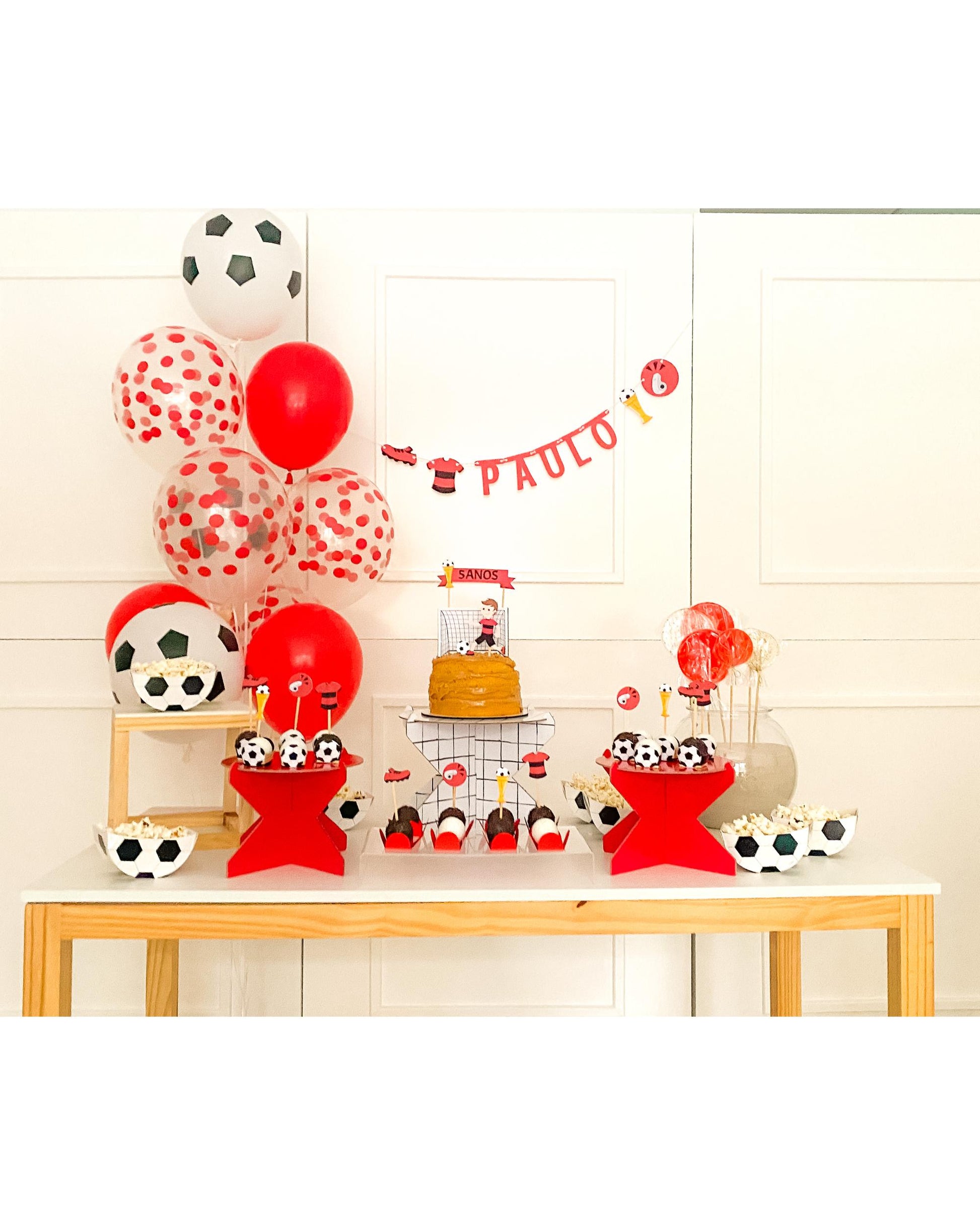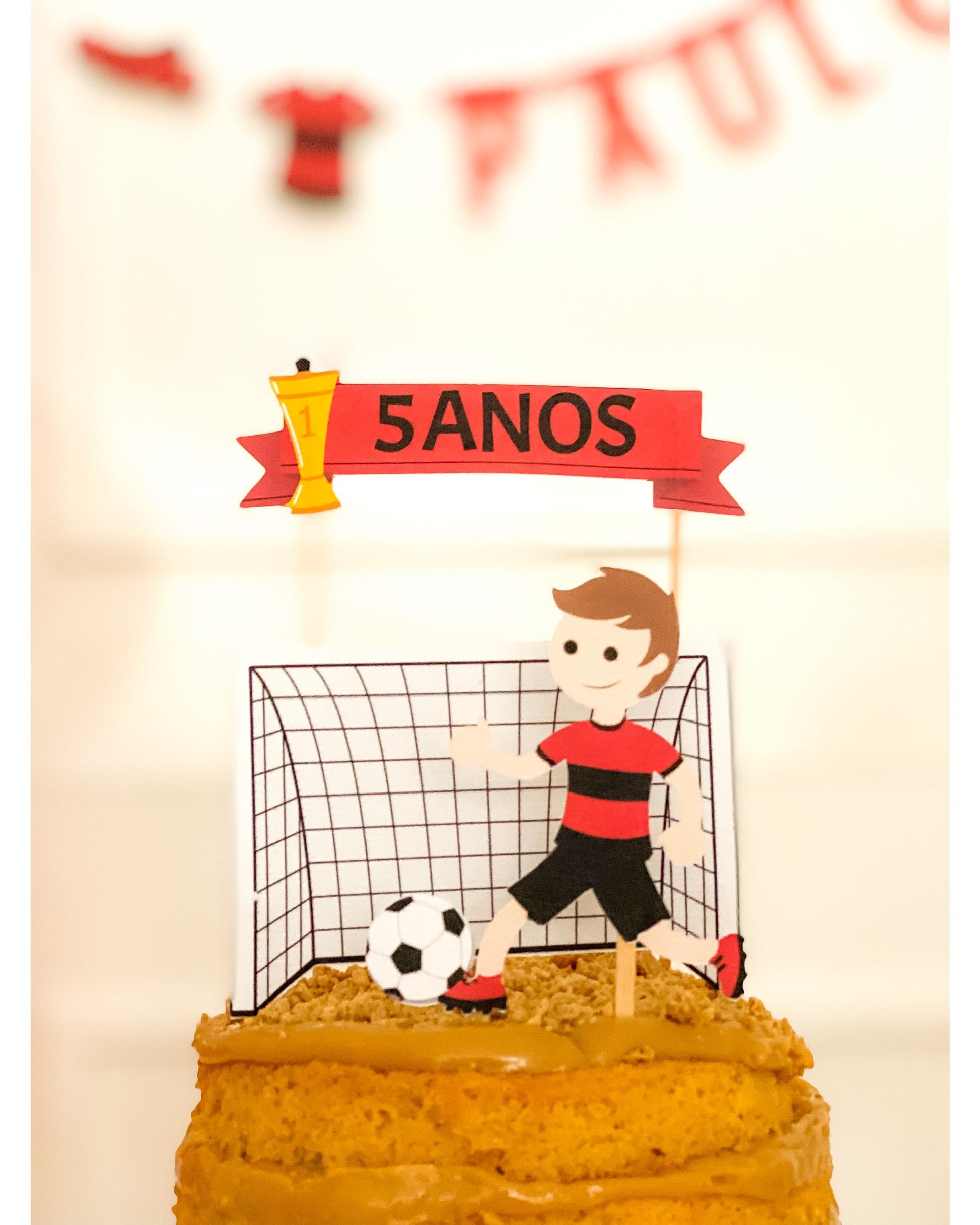 3 elementos em papel colorido e palitos de madeira sendo: gol medindo aprox. 12cm larg x 8,5cm sem consider o palito / jogador (personalização nos detalhes do pedido) medindo aprox. 8cm de larg. X 10cm de alt. sem considerar o palito e faixa personalizável (nome ou idade) medindo aprox. 14cm de larg x 20cm de alt. já considerando os palitos). A personalização (nome ou idade) deve ser informada no campo observação ao final da compra.