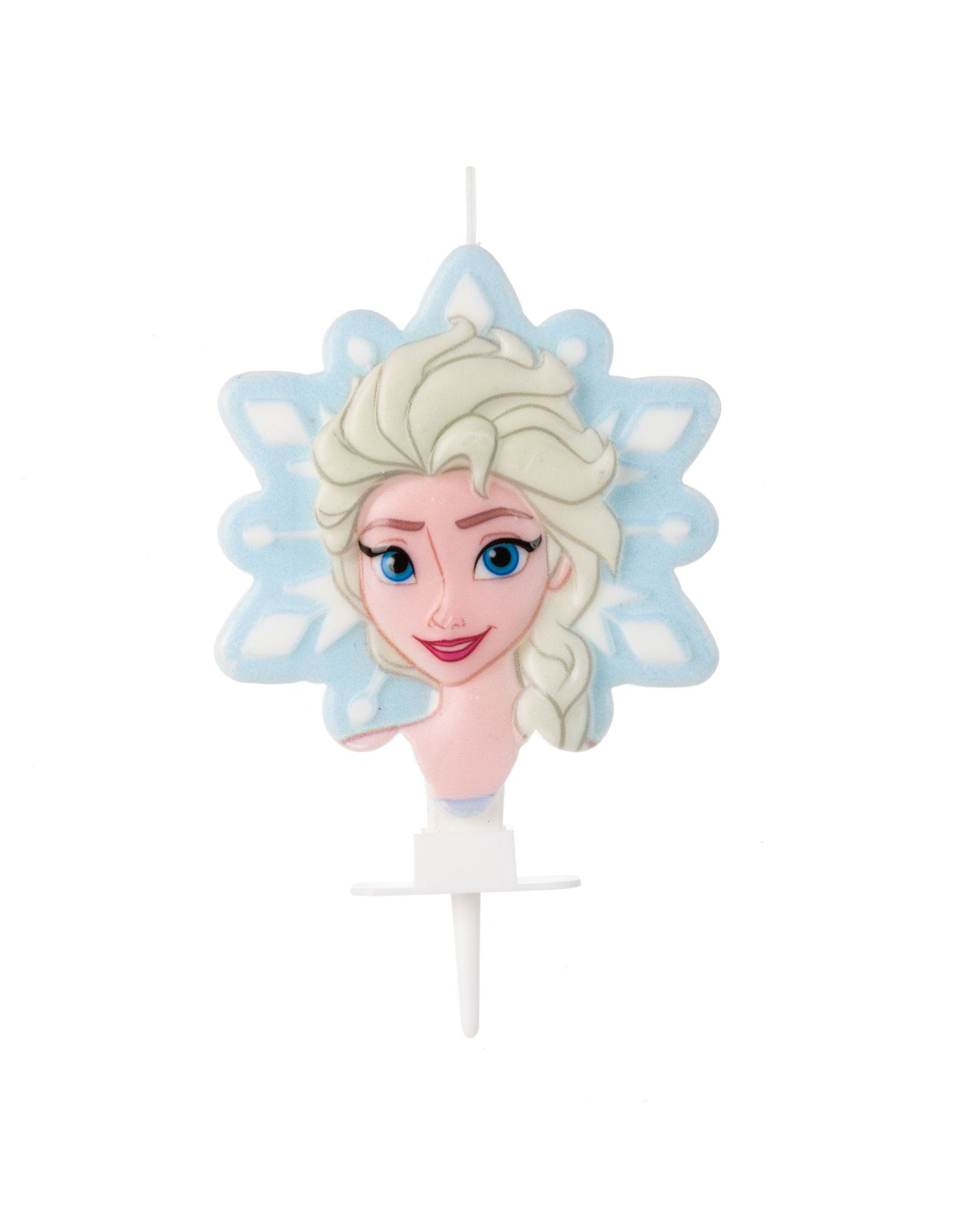Velas em formato de floco de gelo com rosto da personagem Elsa